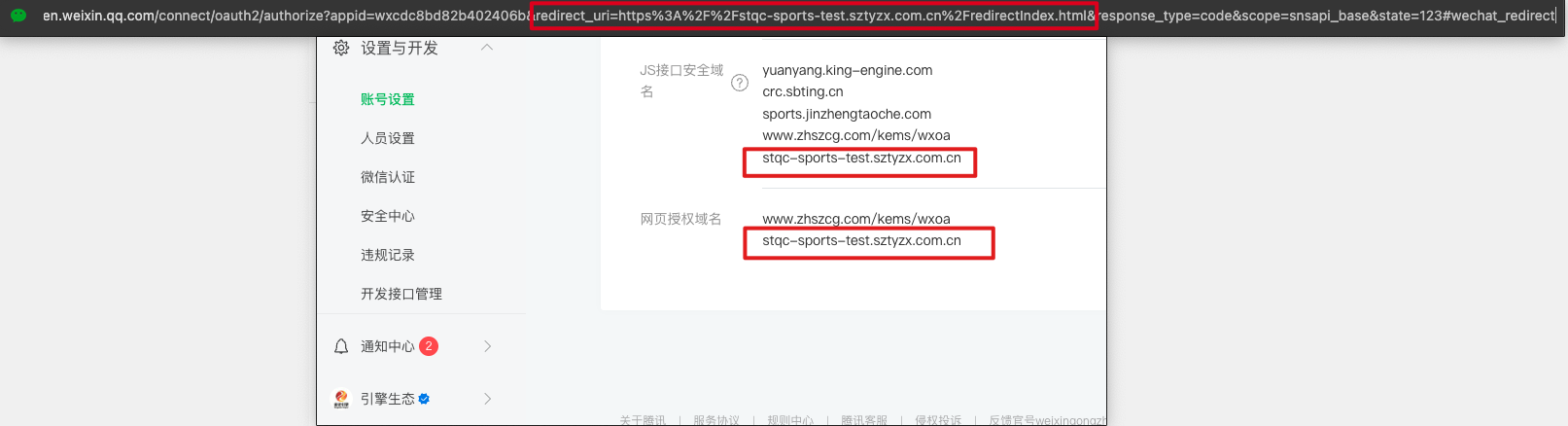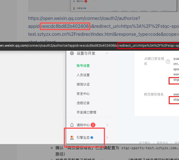 原因是你的授权链接里面的appid是A账号,截图配置网页授权域名是B账号。