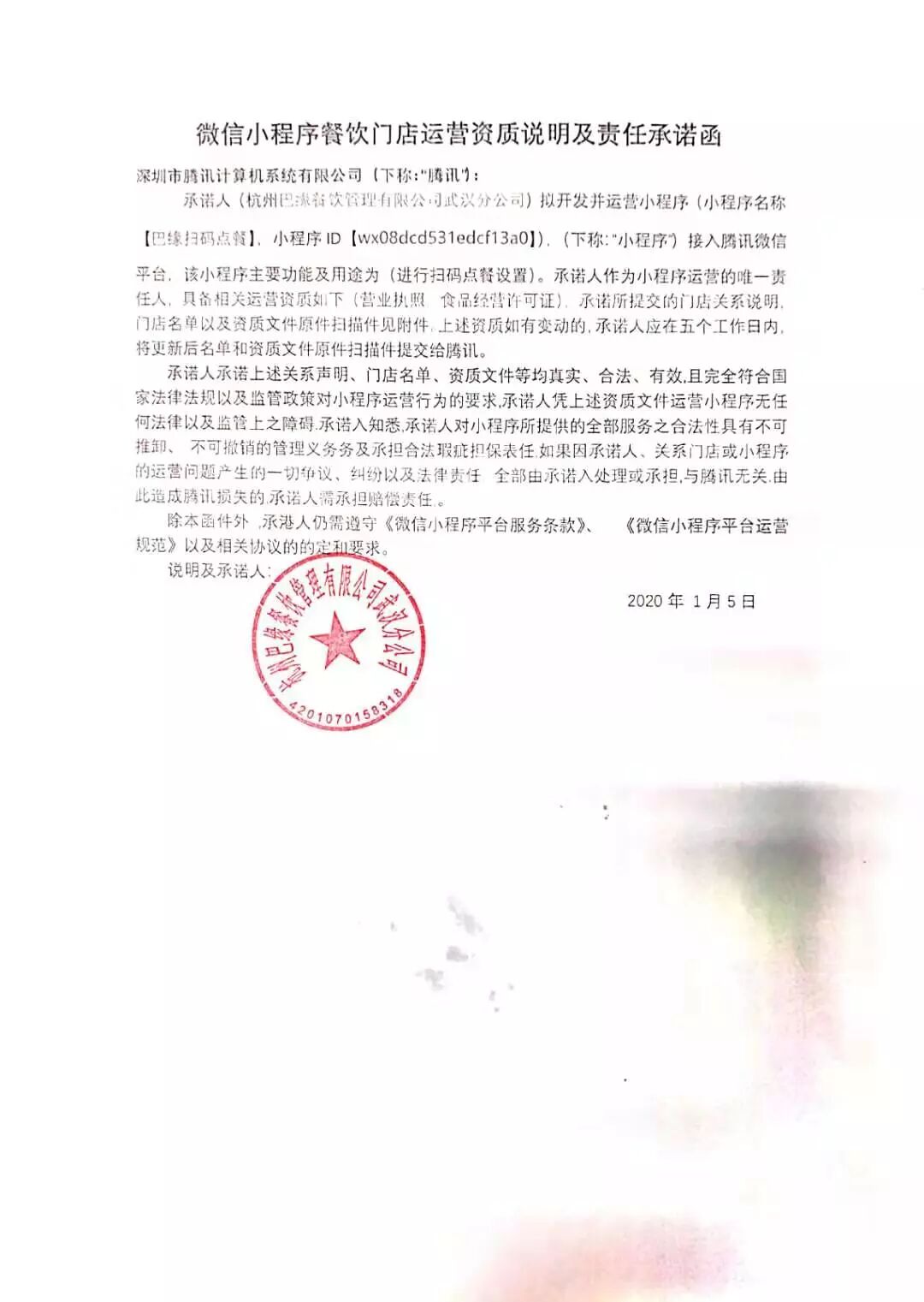 你好,用户提供的关系声明,未在公开渠道核实到相关信息,故提供的关联关系不能支持,建议用小程序注册主体申请餐饮相关资质 或 以资质主体做小程序申请“餐饮-餐饮服务场所/餐饮服务管理企业”类目。