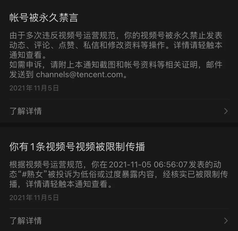 视频号动态及账号被处罚需申诉,请选择以下指引操作:
