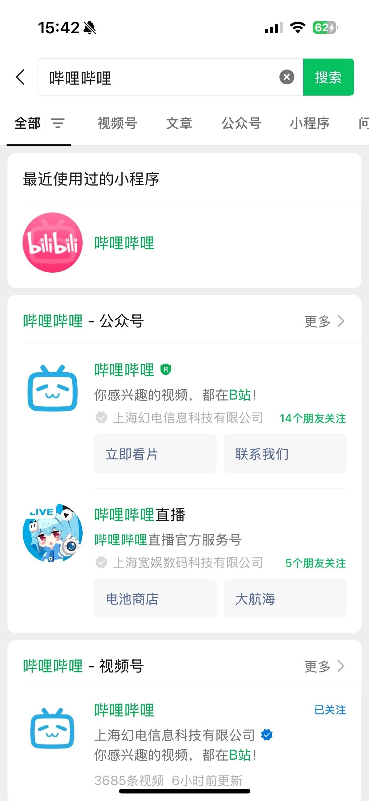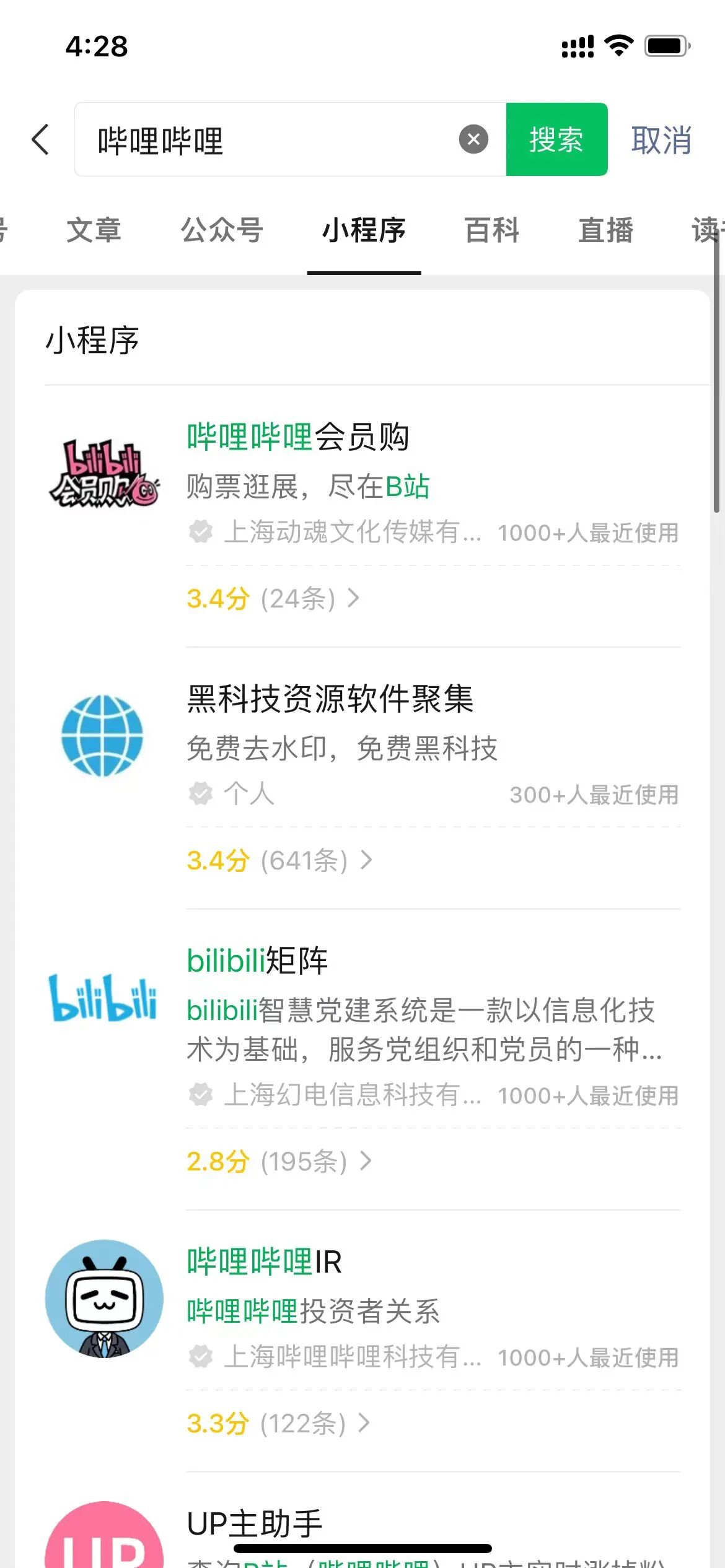 微信里搜是能搜到b 站的小程序。