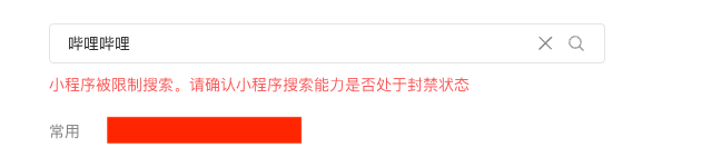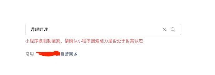 【问题描述】: 微信公众号推文需要插入小程序,小程序为‘哔哩哔哩’,搜索时遇到困难,报错‘小程序被限制搜索。请确认小程序搜索能力是否处于封禁状态‘’,什么原因如何解决?时而能搜到时而搜不到,上周是正常的,本周又不正常了。
