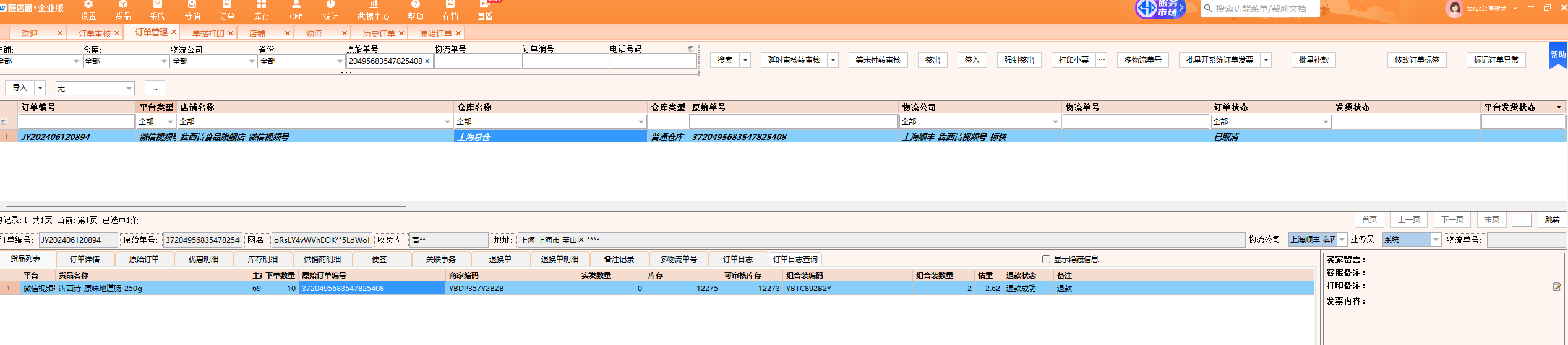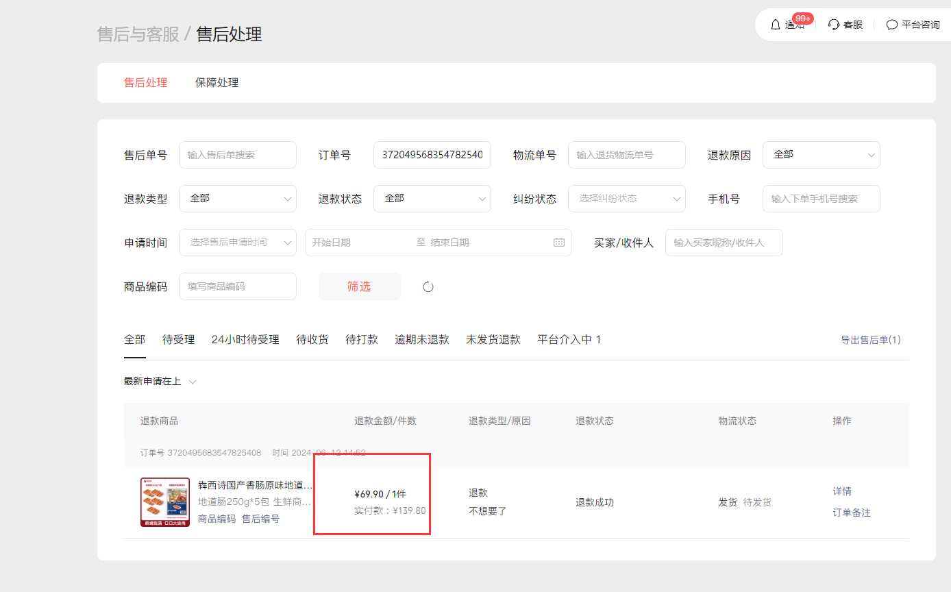 问题描述:视频号小店顾客一个订单连续拍了2件商品,视频号后台退了1件,但是旺店通ERP退款状态显示全部退款,导致后台与旺店通退款数量存在差异性。咨询旺店通ERP技术人员反馈说:需要视频号技术人员报一下入参报文;(如上面截图)麻烦核实协助处理谢谢