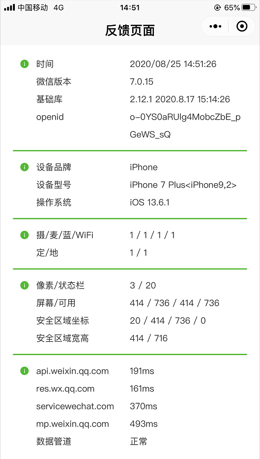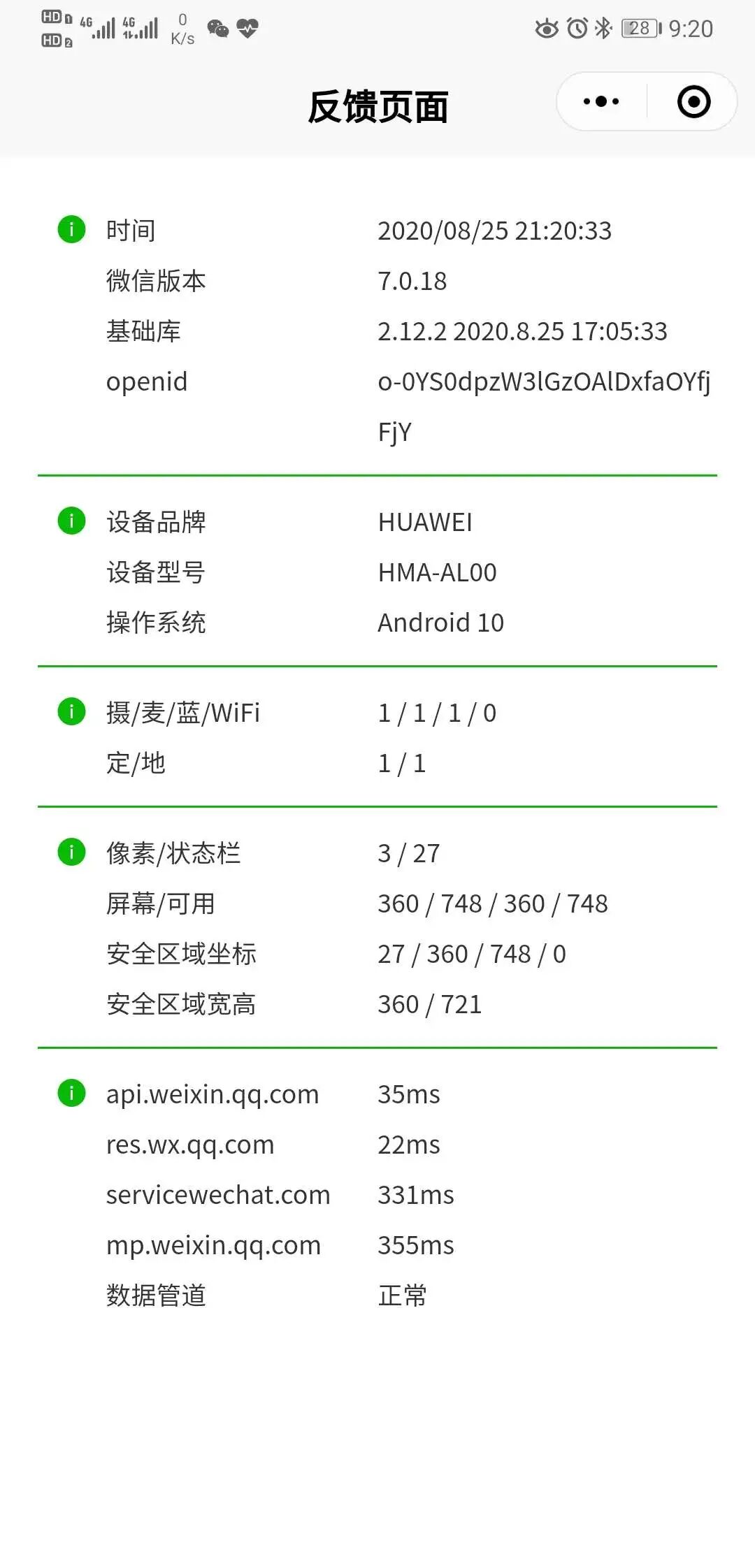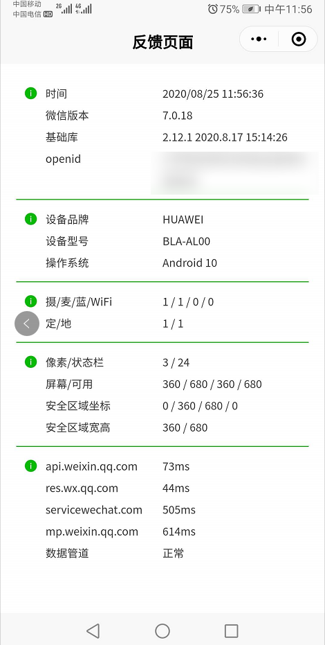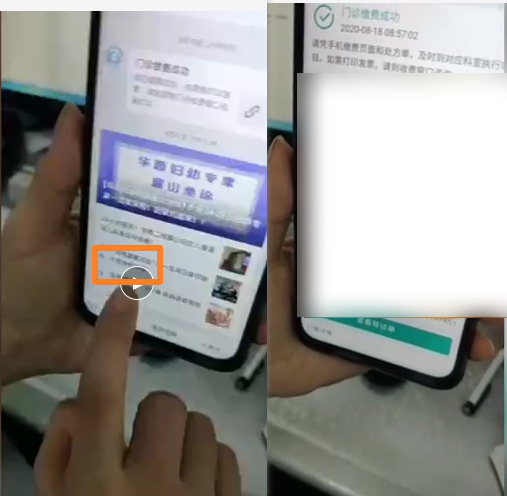 用户2020/08/25早上8:35左右,进入公众号MSFY200912,点击‘’医疗服务-----挂号缴费‘’菜单进入了‘’门诊缴费详情‘’页面,