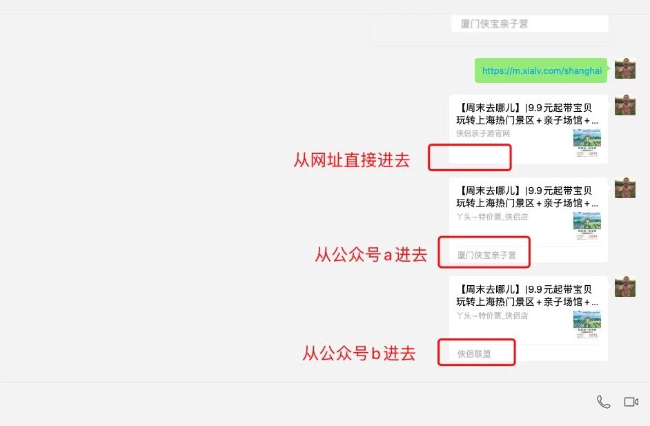1、从公众号a进去, 分享网页 https://m.xialv.com/shanghai ,左下角显示的是 公众号a的名称