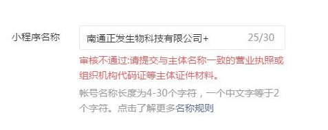 小程序名称审核没有通过,提示需要提交与主体名称一致的营业执照或是组织机构代码证等主体证件材料