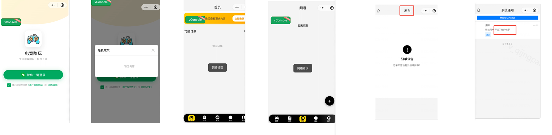 3.【首页、频道】等页面打开报错,提示:网络错误,请修复或在提审页面上传小程序完整录屏,再提交代码审核。