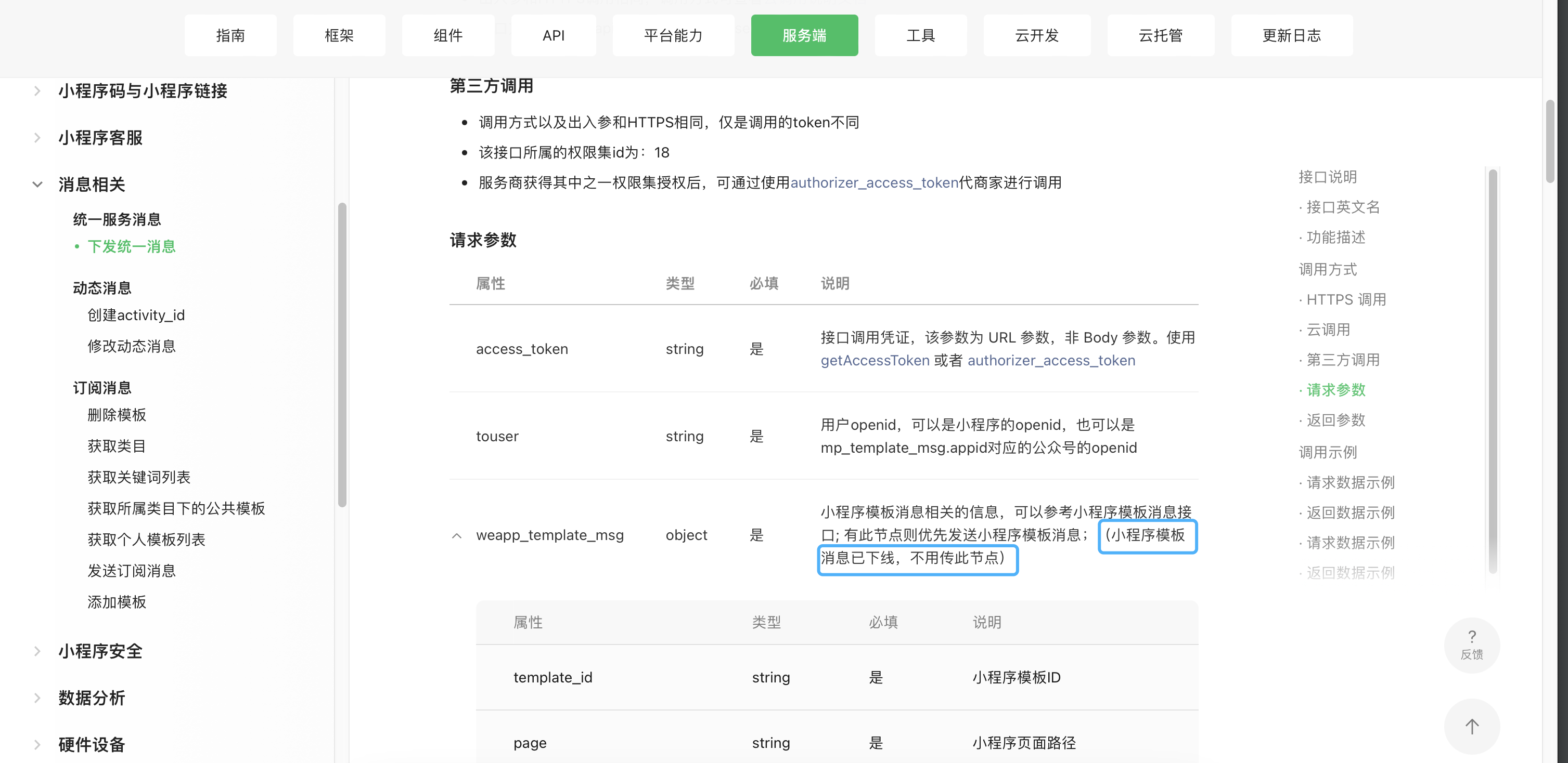 请明确该功能是否已废弃, 我现在希望使用小程序模版进行消息发送, 文档中有该参数, 但是未明确是否还能使用?