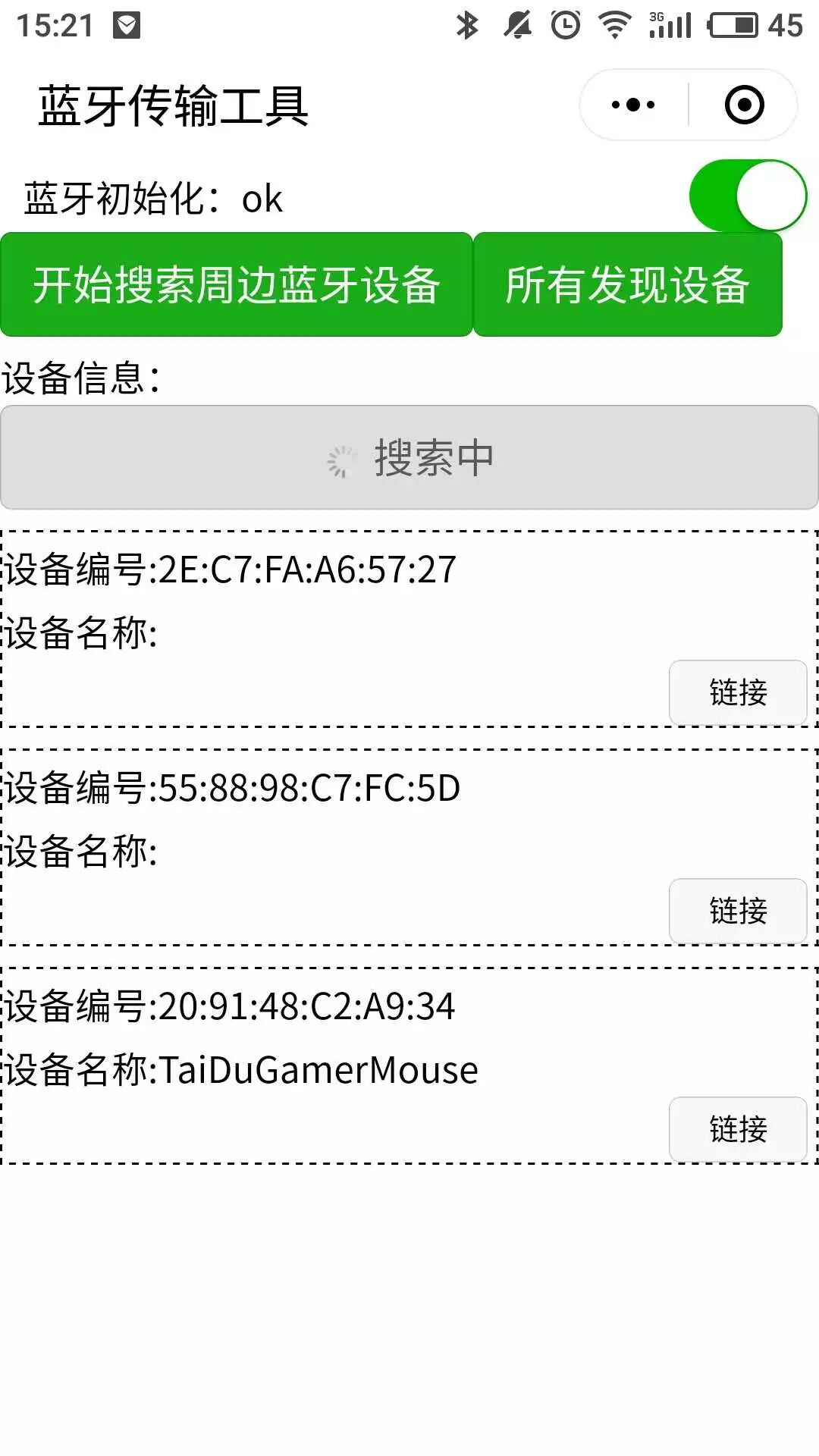 问题:在掉用接口后,无法获取到手机和PC的蓝牙信息,按照网上和微信提供的接口蓝牙接口,无法获取到手机或者PC的蓝牙信息,获取到的是不是想要的蓝牙信息(什么蓝牙鼠标等)