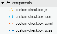 编写一个自定义组件,首先应在小程序代码目录中合适的位置创建一个 json 文件。这里我们把文件放置在小程序的 components 目录下,名为 custom-checkbox.json 。