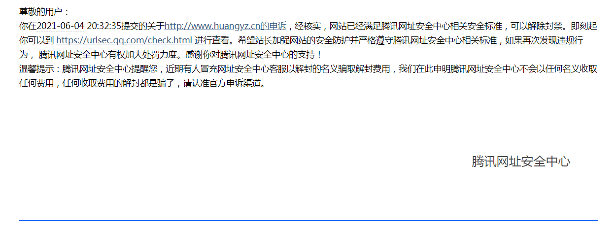 之前域名被禁止访问了,去腾讯安全网页安全中心申请解禁了,也成功了。