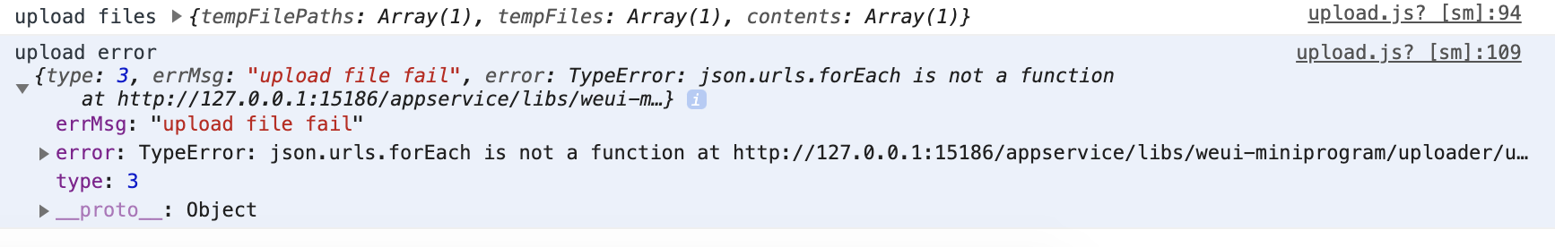 "TypeError: json.urls.forEach is not a function at http://127.0.0.1:15186/appservice/libs/weui-miniprogram/uploader/uploader.js:237:51"