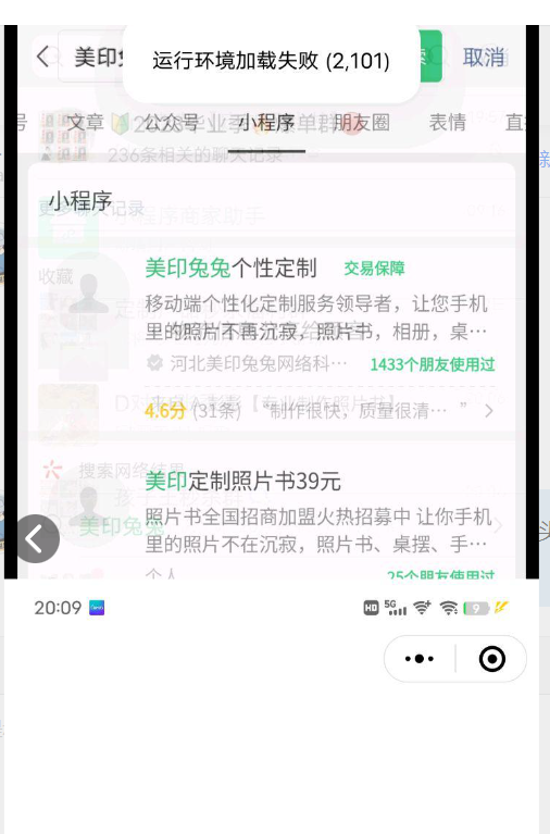 安卓手机双开微信,分身微信可以打开小程序,主微信打开小程序提示:运行环境加载失败(2,101)。