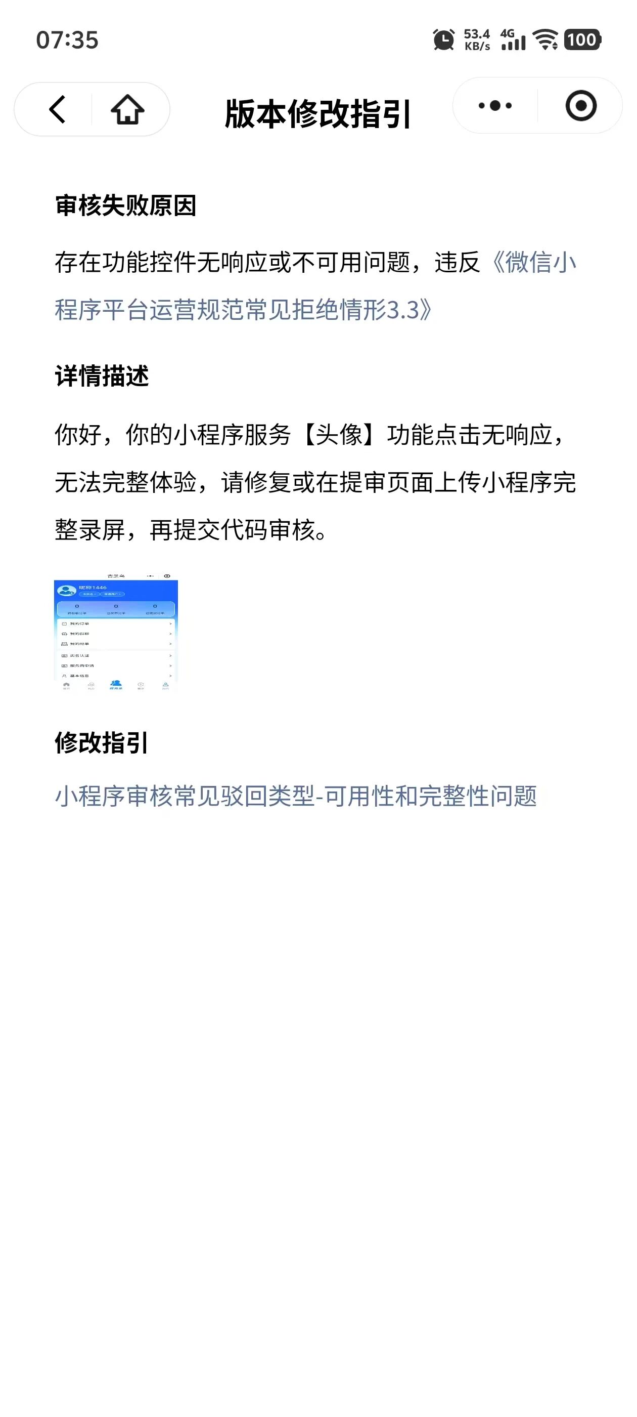 注册后默认头像图片上虽然有加号,但是并没有开发功能,下面有个基本信息可以点进去修改头像、昵称,测都不测试就直接打回了?什么时候开始小程序审核还会审核没有的功能了?上个版本通过都使用了一段时间,现在这个版本就是改了下底部图标和位置,审核了半个月不给过?