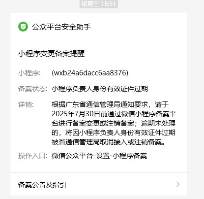 关注后,可在微信内接收相应的重要提醒。