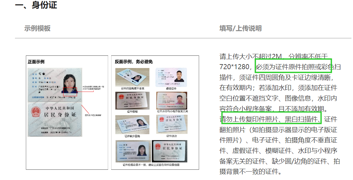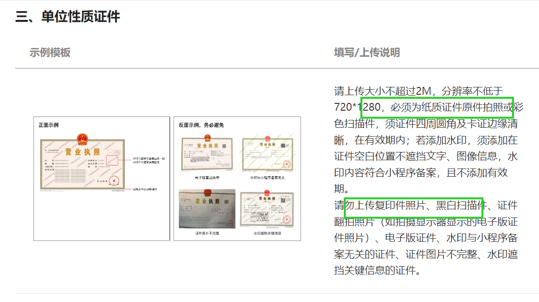 必须是纸质原件拍照或者彩色扫描件,黑白件不行,企业备案使用过黑白证件,不行,被驳回了