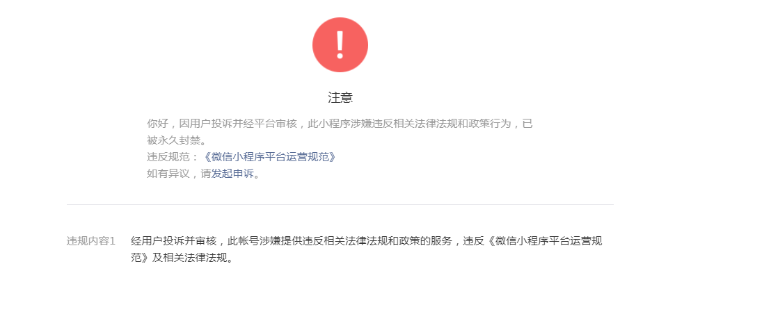 您好,我们小程序被封了,说我们违反了