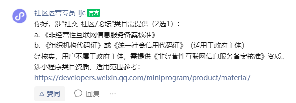 你好,涉“社交-社区/论坛”类目需提供(2选1):
