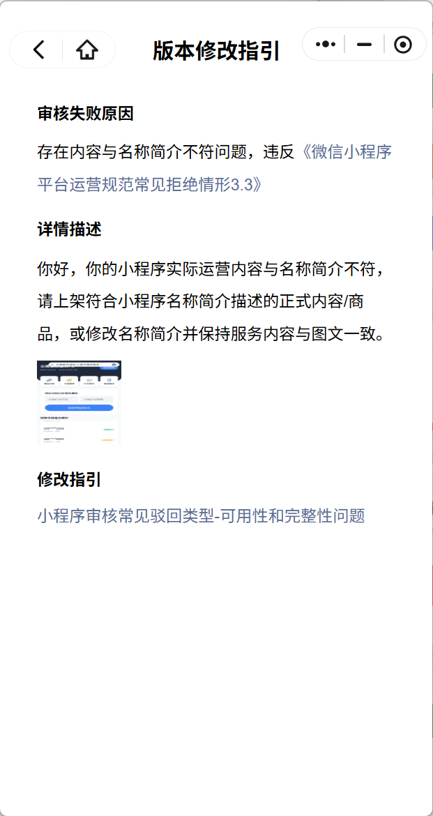 来来来,审核团队来告诉我,我这次的修改的内容又是哪里和名称不符合了?没有手机号估价的内容了,也没有获取用户的手机号,就一个对手机开头和后四位的评分工具,我小程序也是叫靓号通信,我的运营内容哪里和名称不符合了?ID:wx5982450a038483b3在这里,你们这个运营内容和名称不符是万能的是吧?每次给些错误的原因,我们怎么改?
