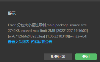 我已经将分包每个都控制在2M以内了。上传还是提示分包太大。