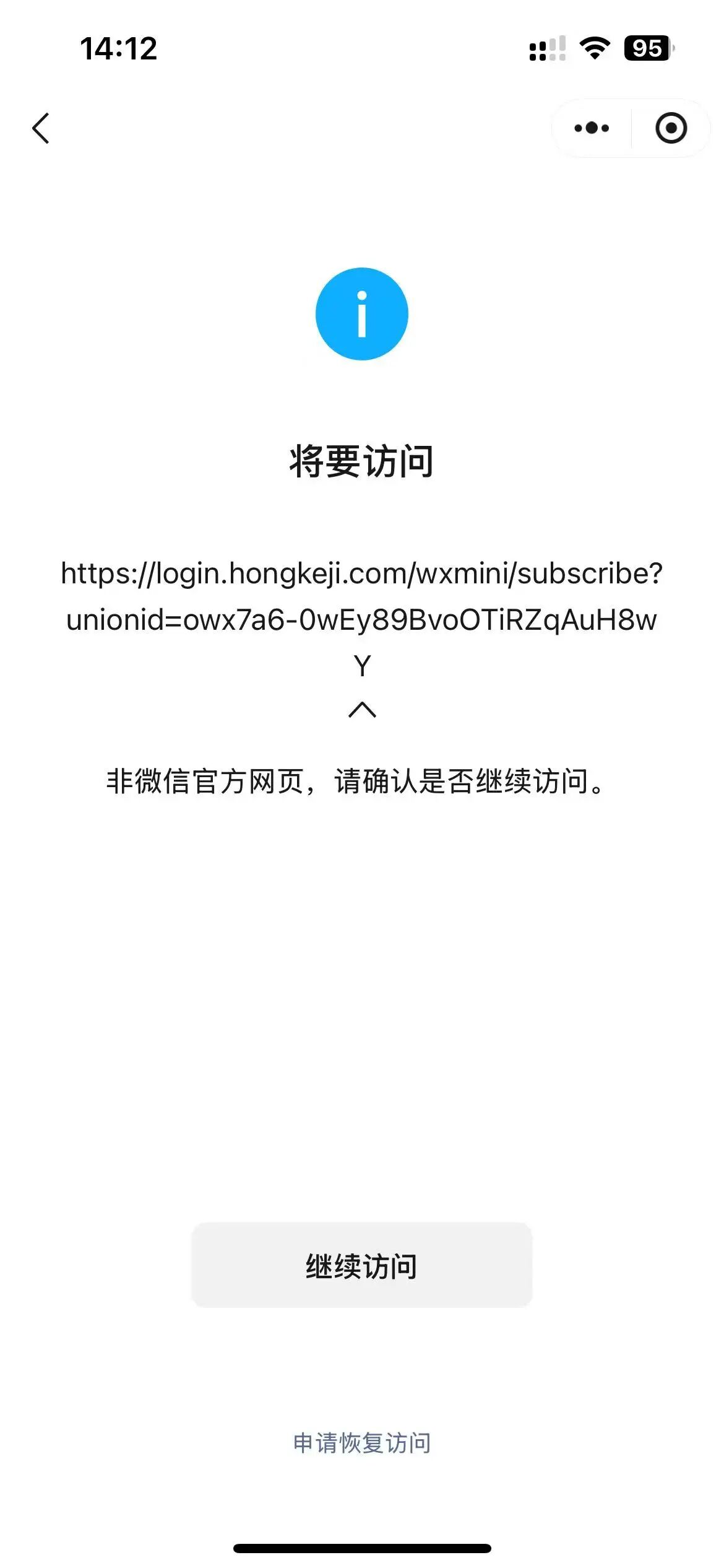 访问服务号的时候一直提示将要访问https://login.hongkeji.com