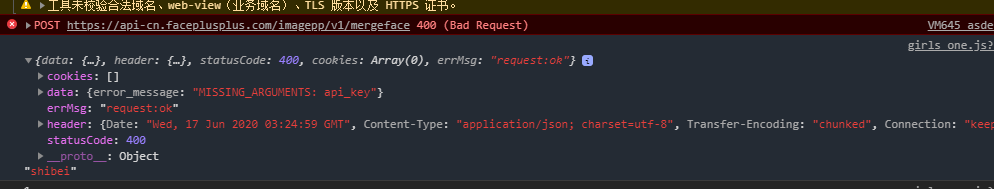 wx.request({ url: request_url + url, header: { 'content-type': 'application/x-www-form-urlencoded', //指定请求的类型 }, method: 'POST', data: data, success: function (res) { if (res.statusCode !== 200 || typeof res.data !== 'object') { App.showError('网络请求出错'); return false; } success && success(res.data); }, fail: function (res) { // console.log(res); App.showError(res.errMsg, function () { fail && fail(res); }); }, complete: function (res) { // wx.hideLoading(); wx.hideNavigationBarLoading(); complete && complete(res); } });