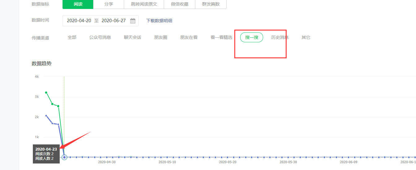 这是搜一搜的数据,现在发布的文章或者历史发布的文章都搜索不到
