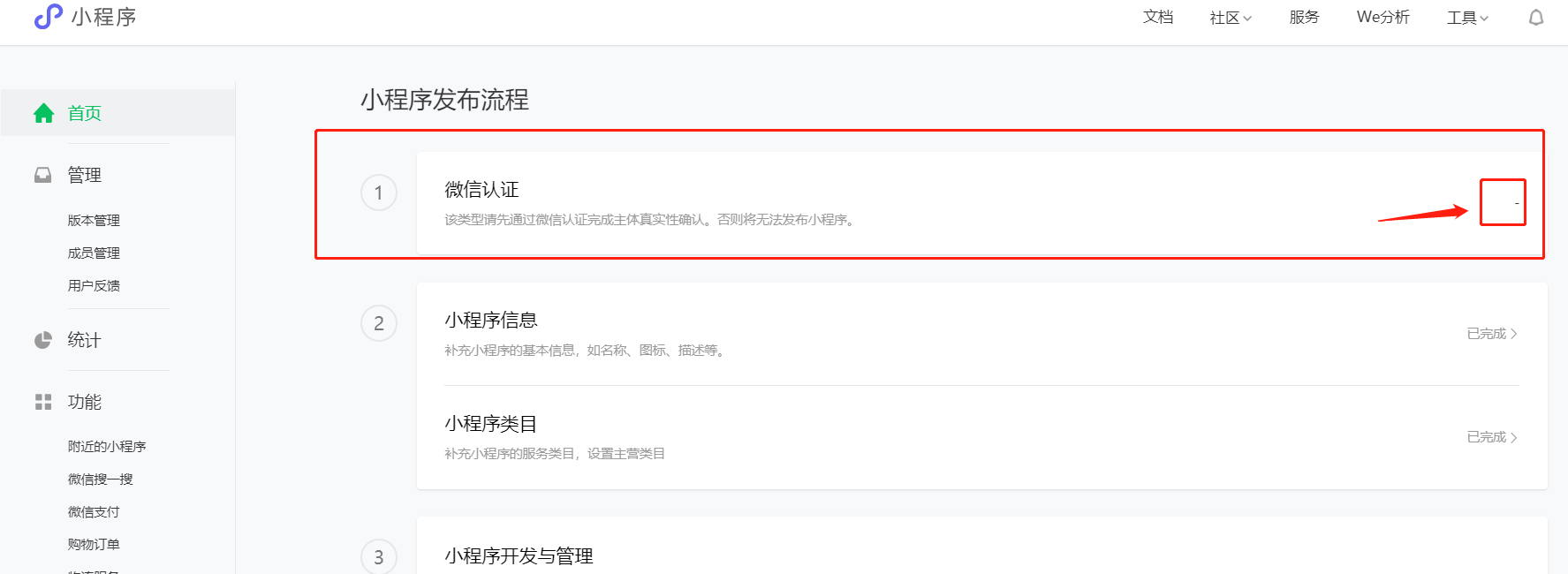 一、申请微信认证入口: 小程序/运营/微信认证指引