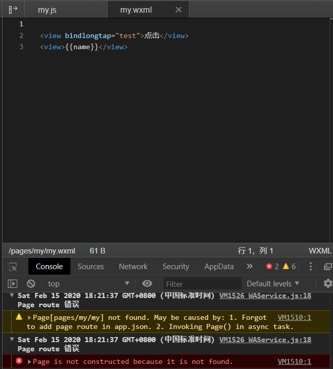 在写完页面事件触发后报错 页面没有被构造,因为它没有被找到?