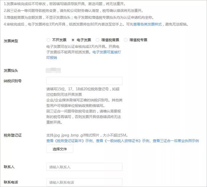 2)增值税专票抬头使用用户填写的企业全称或组织全称;