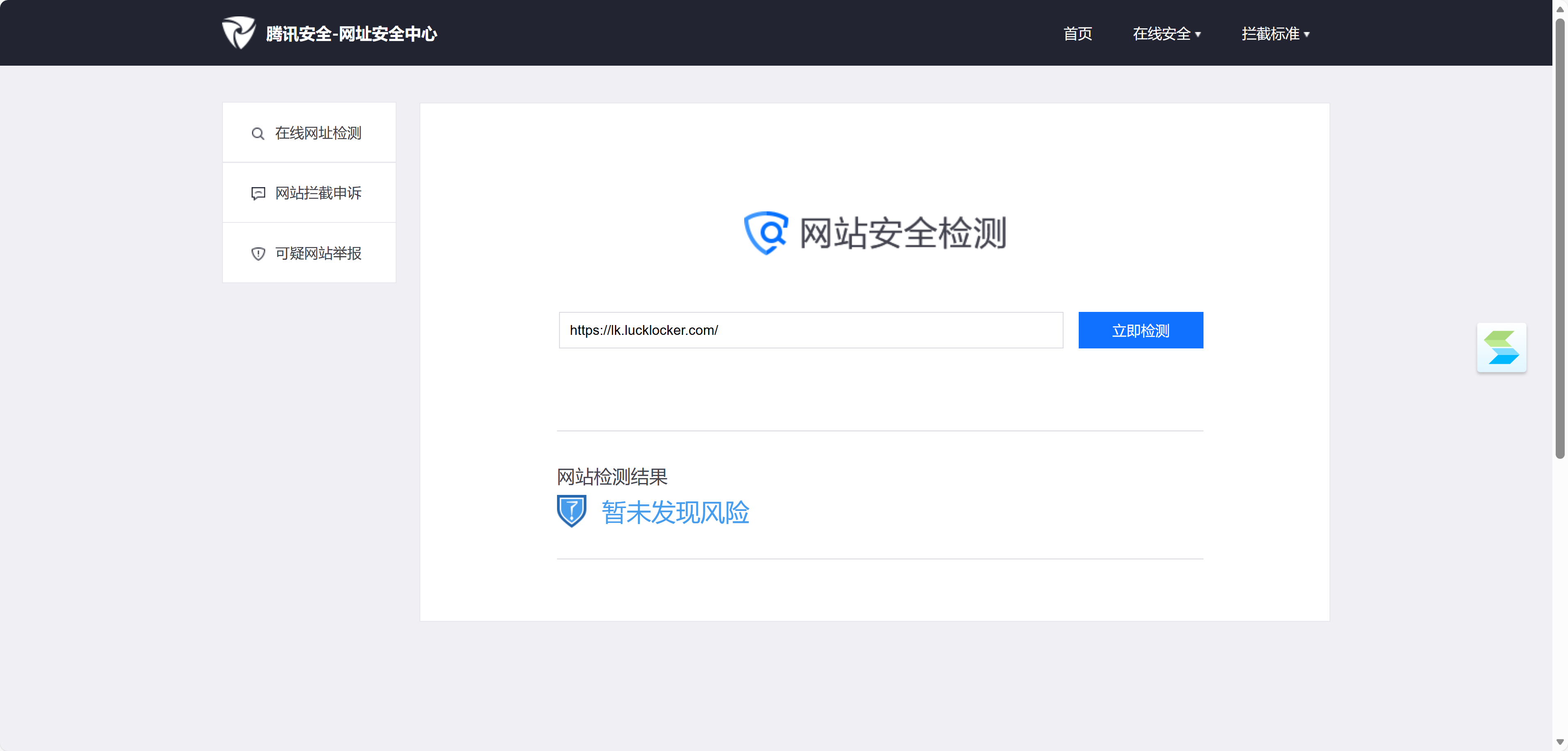 腾讯安全-网址安全中心,检测正常。