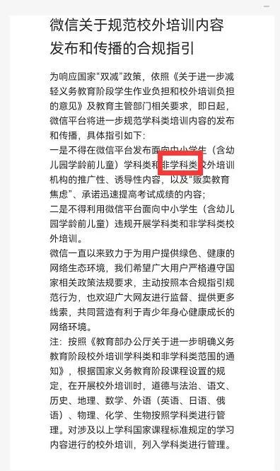 如题,是否意味着面向中小学生类似“舞蹈招生“、美术兴趣班等这样的非学科信息都不能在微信平台上发布和传播?有官方具体解答一下吗?