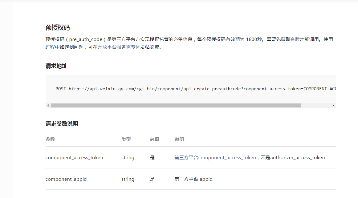 https://developers.weixin.qq.com/doc/oplatform/Third-party_Platforms/2.0/api/ThirdParty/token/pre_auth_code.html#%E8%AF%B7%E6%B1%82%E5%9C%B0%E5%9D%80