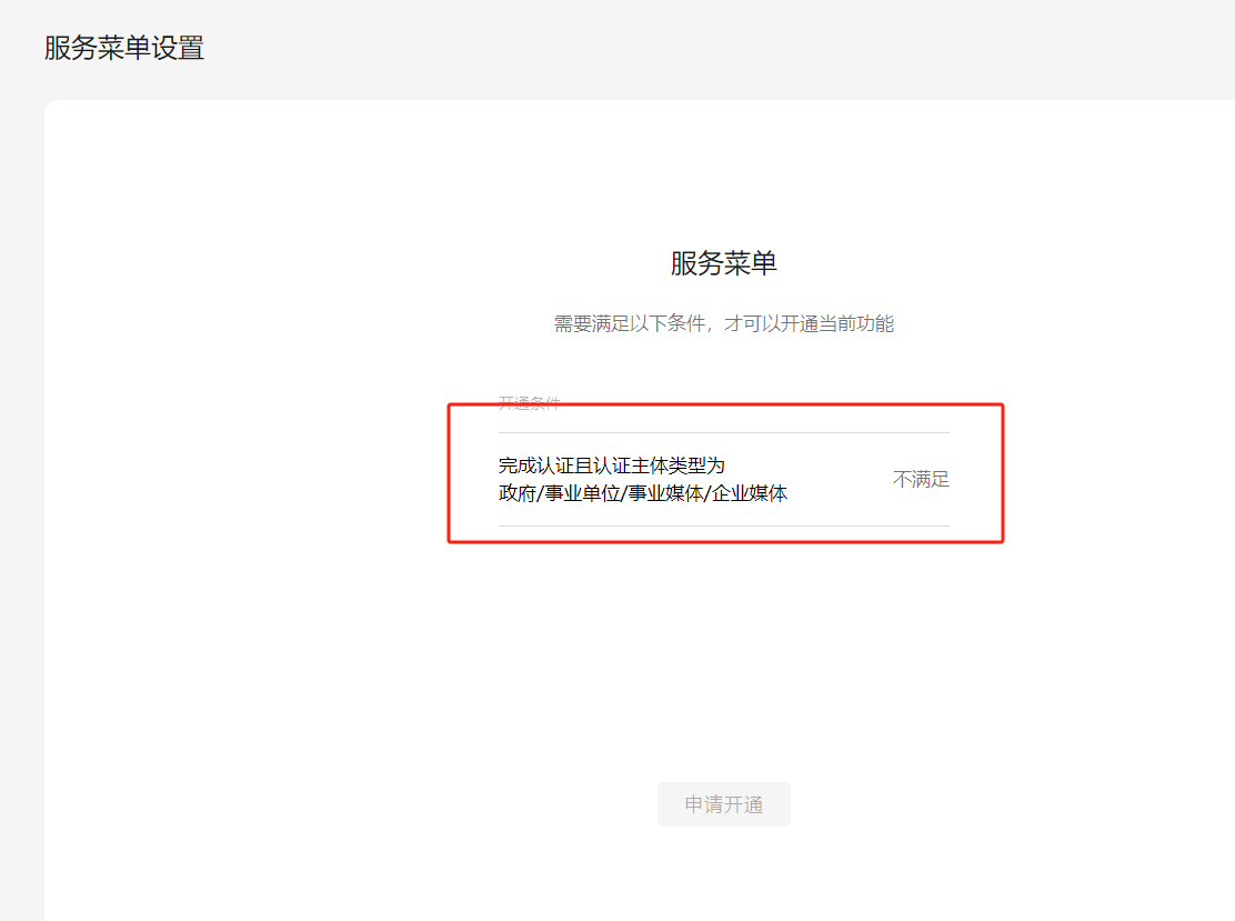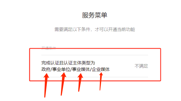 目前认证主体类型要求是这四种才可以开通服务菜单,自己检查下是否符合条件呢?