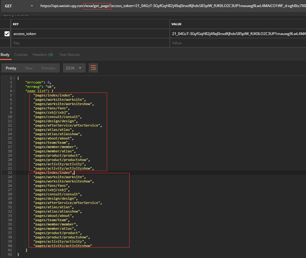 接口:https://api.weixin.qq.com/wxa/get_page?access_token=TOKEN