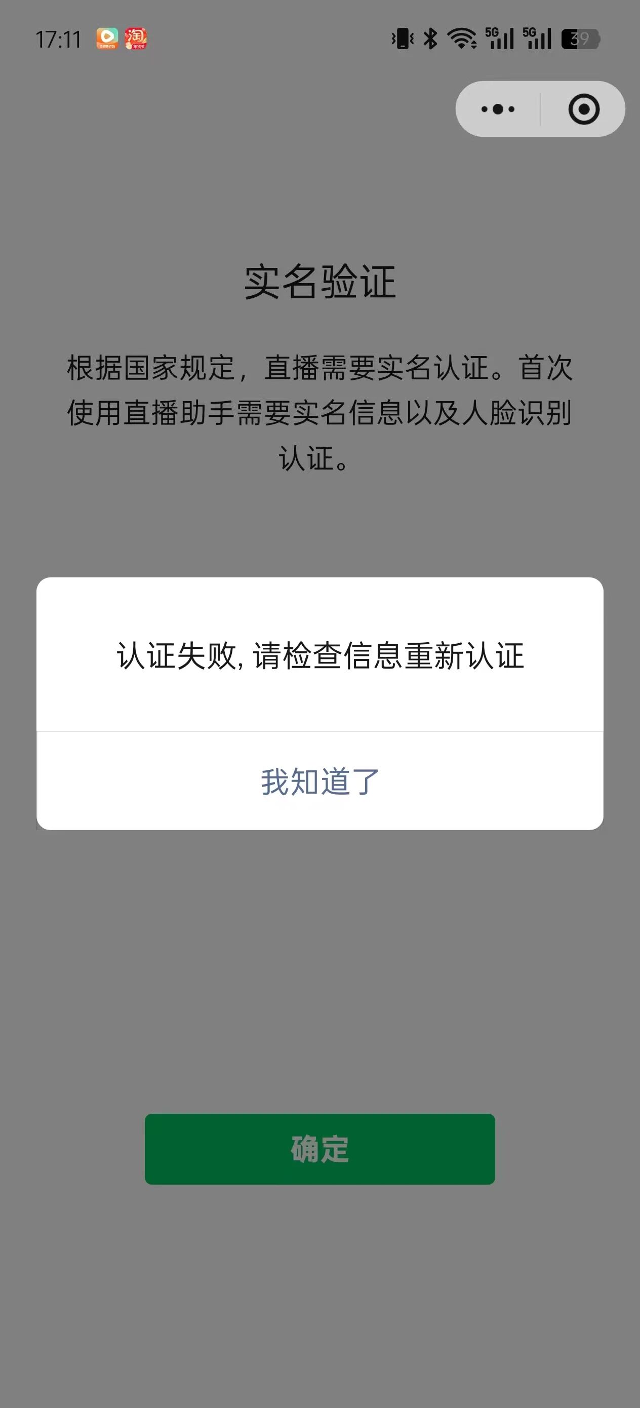 为什么小程序直播添加主播的时候扫脸都不跳出来就说认证失败了呢?该检查的都检查了,也银行卡认证了