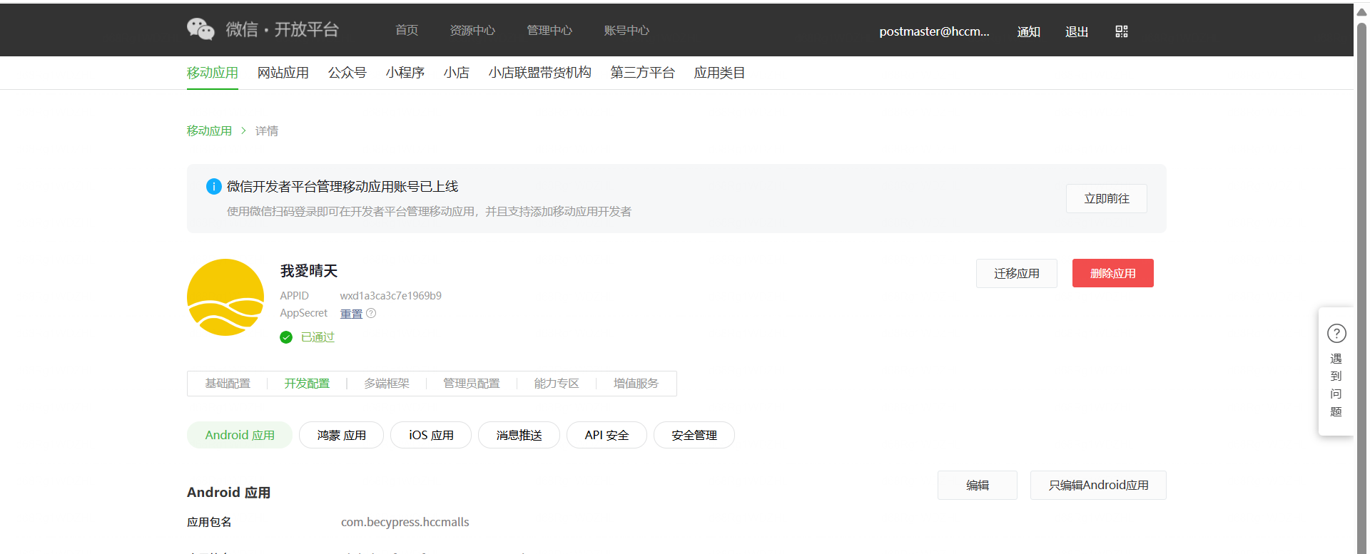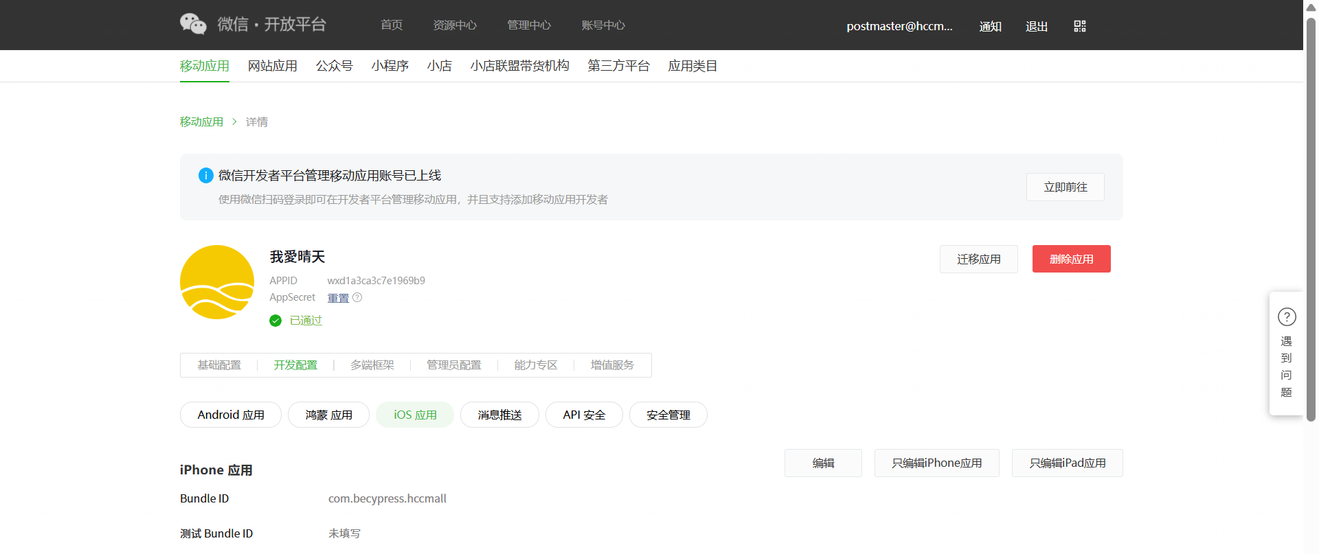 海外主体的移动应用已获得微信分享能力,Appid/secret配置后,进行分享还是提示“由于当前分享的应用未获得分享权限,无法分享到微信?”