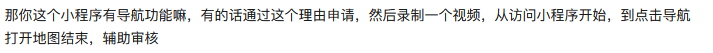 我们小程序里面包含电影模块,因该业务涉及附近电影院就近推荐服务,需获取用户地理位置信息匹配最近的电影院并提供路径规划服务,完成购票观影业务场景的闭环,故申请 wx.getLocation 接口,用于匹配最近电影院、以及提供路径规划服务。