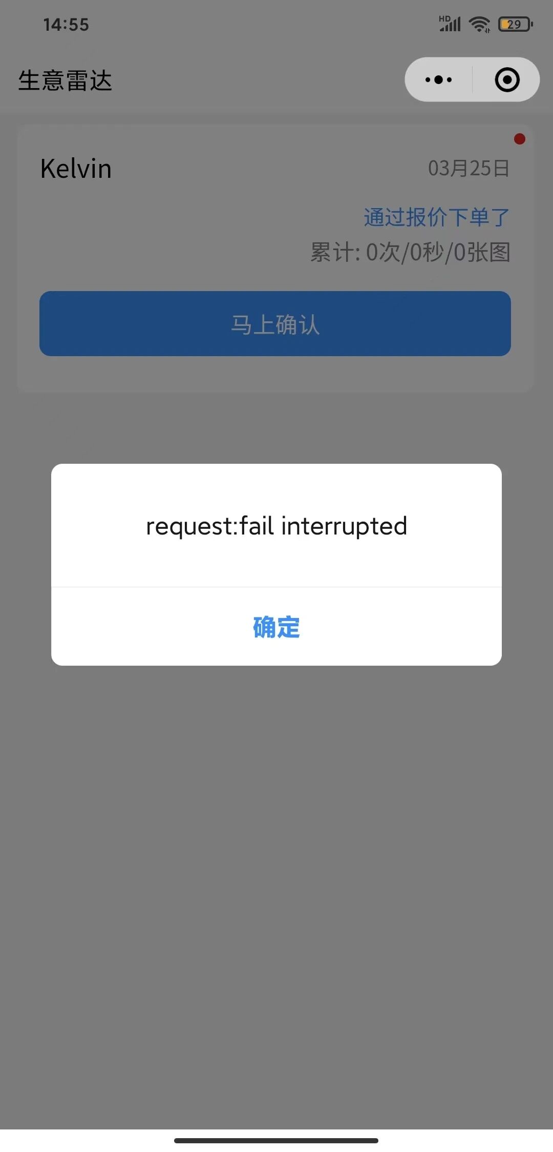 原因:小程序退后台之后发起网络请求 解决:不要退后台