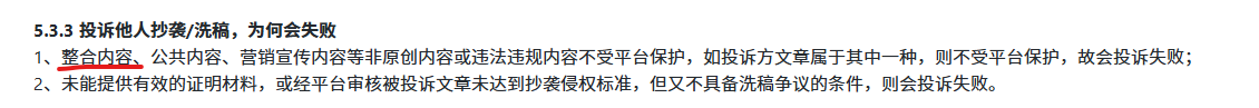 信息整合类的内容,按照平台规则,是会投诉失败的。可参考https://mp.weixin.qq.com/cgi-bin/announce?action=getannouncement&key=11565151480ZCKVy&version=1&lang=zh_CN&platform=2