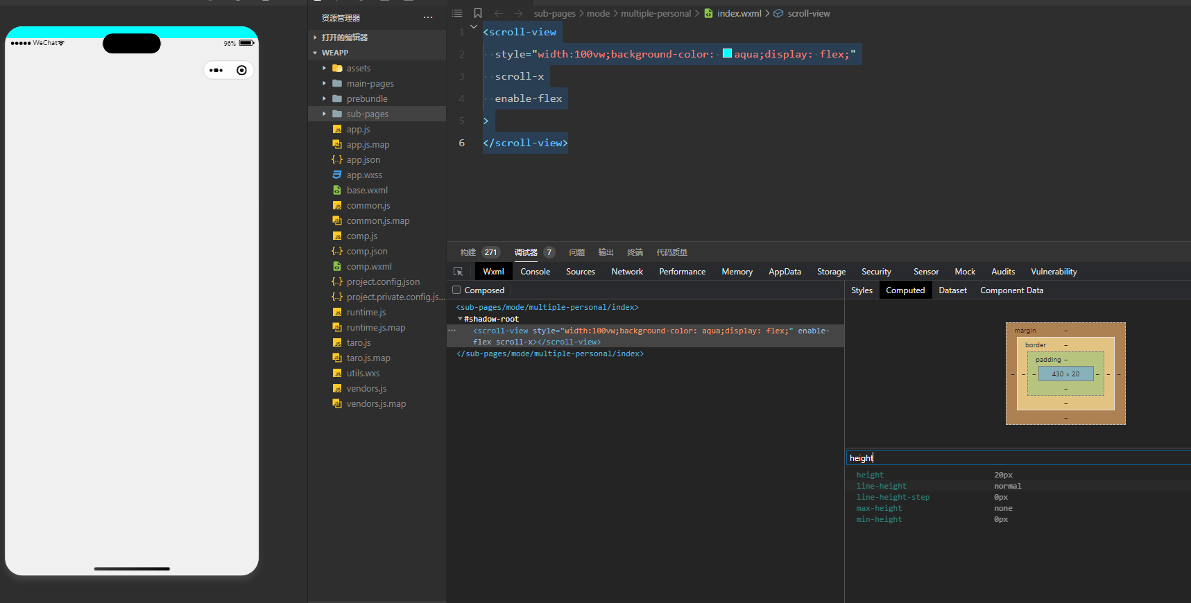 <scroll-view style="width:100vw;background-color: aqua;display: flex;" scroll-x enable-flex > </scroll-view>