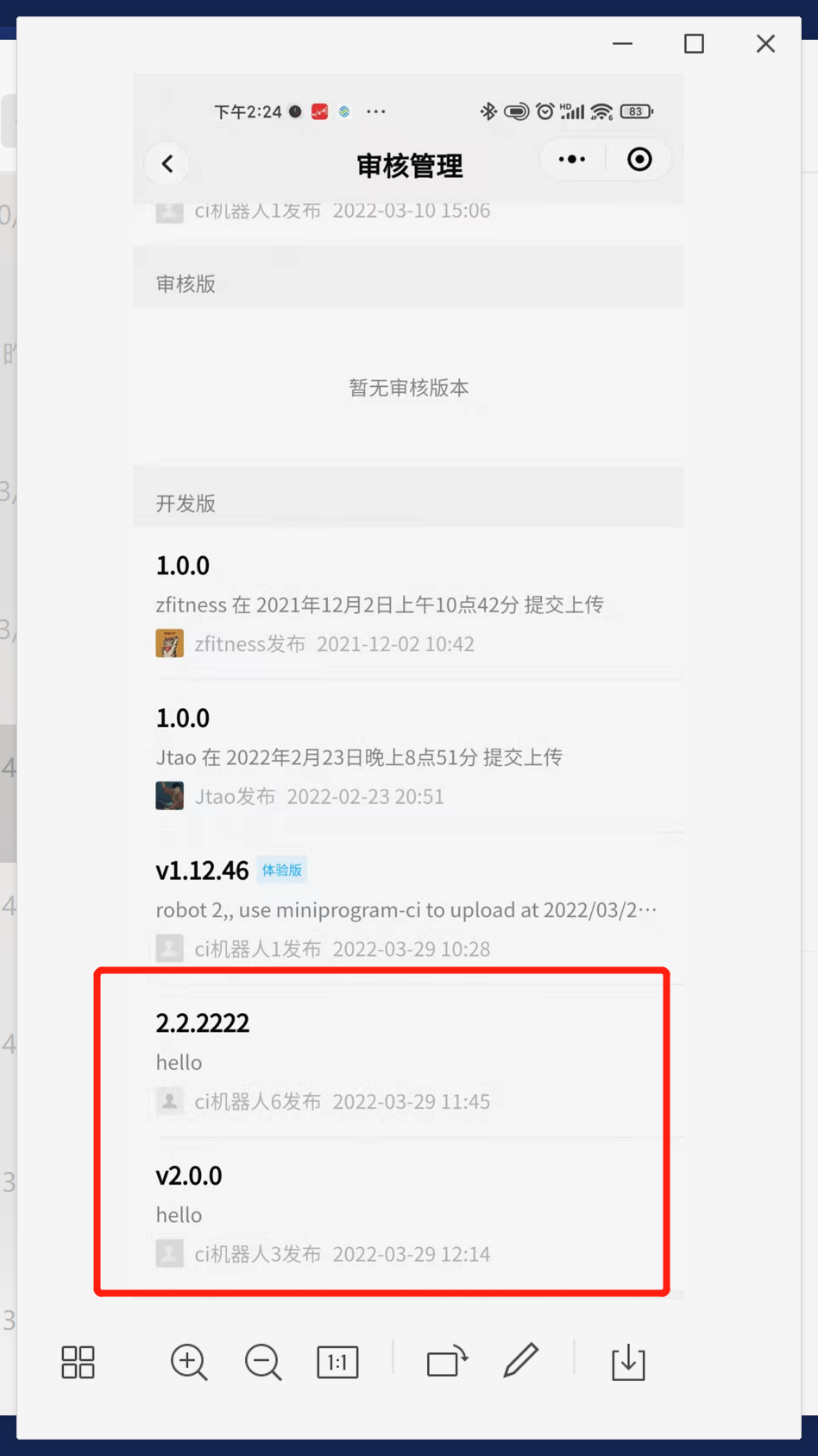 在小程序助手的 “审核管理”以及浏览器里面小程序后台都能看到该版本。