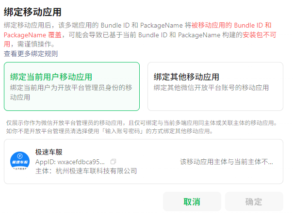 当前主体已关联主体了。为什么小程序还是关联不了移动应用?