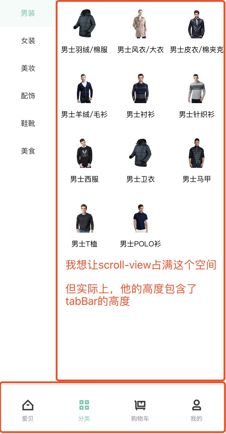 - 页面是一个scroll-view,需要减去底部tabBar的高度,然后赋值给scroll-view,但是微信小程序不提供这个API