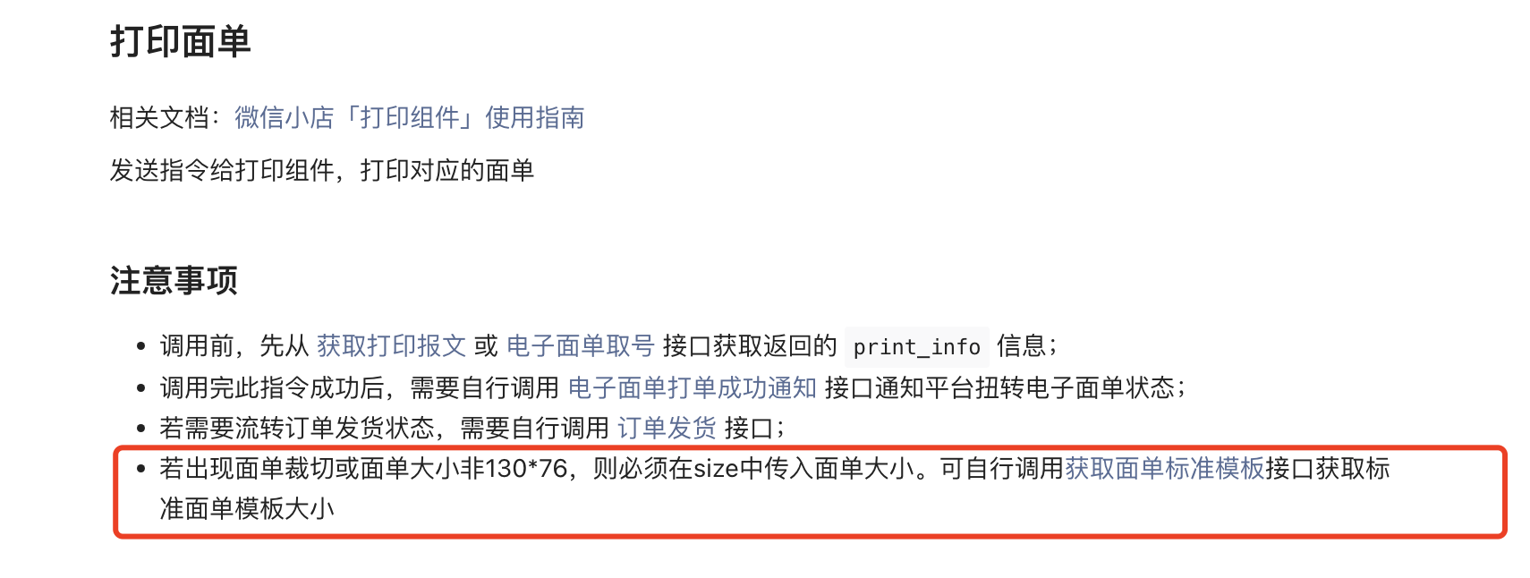 小店打印最好用130*76面单纸,不是这个尺寸的需要开发适配传入Size参数。