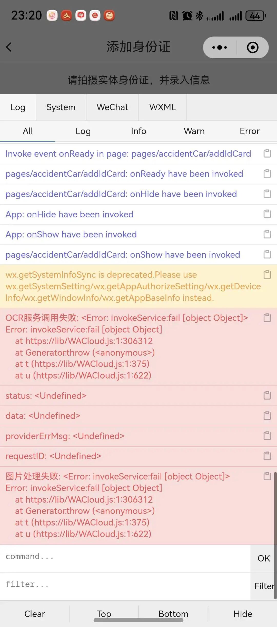 以上ocr身份证识别在鸿蒙系统5.0(“纯血鸿蒙” )会报以下错误:只有错误stack,没有具体的信息,请官方同学看看。