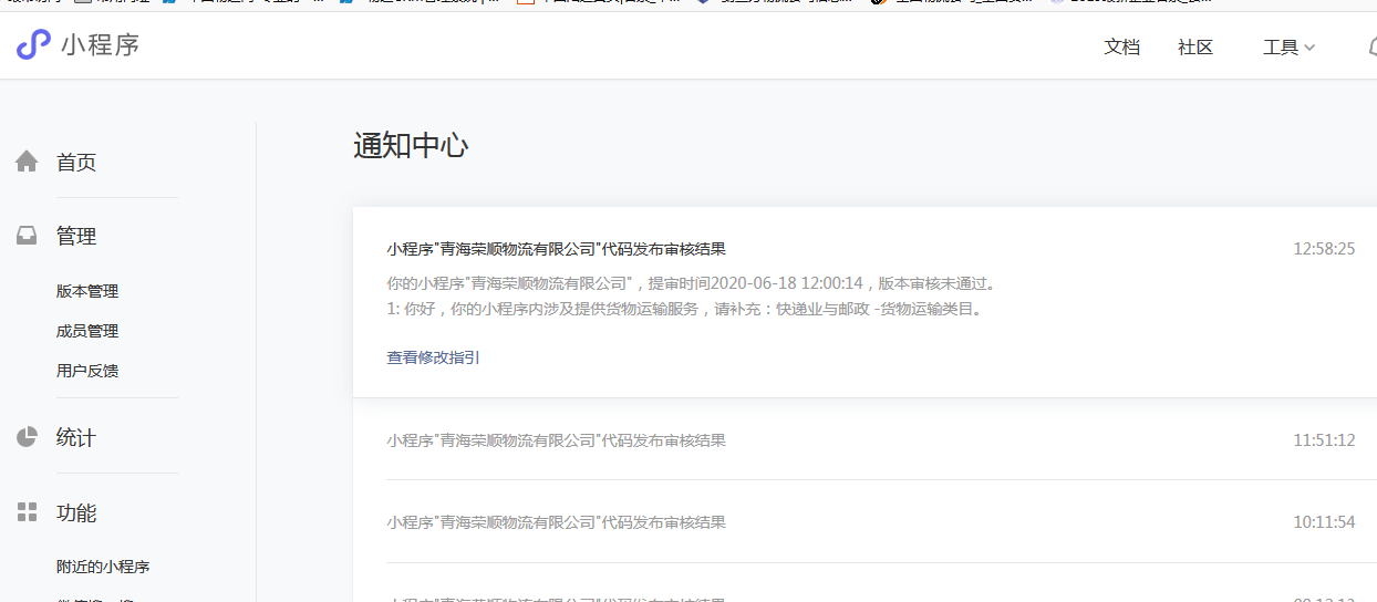 你好,涉快递业与邮政-货物运输类目,需提供与小程序主体一致的《道路运输经营许可证》,经核实,用户提供的是《营业执照》,审核不能支持