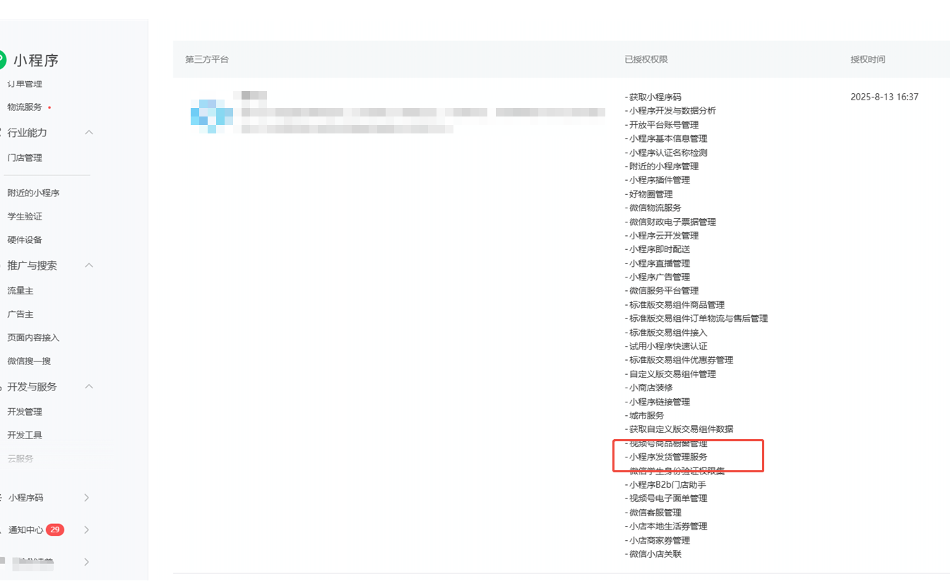 小程序授权对接返回api unauthorized rid,被告知本身没有开发权限