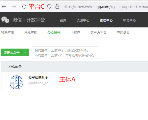 现在就是主体A和B都授权第三方C,但是在开放平台界面只有A是绑定的,B没有在绑定列表里,而同一个微信用户访问两个主体公众号,返回不同的unionid。是否需要在开放平台下再手工绑定B才能使unionid相同?