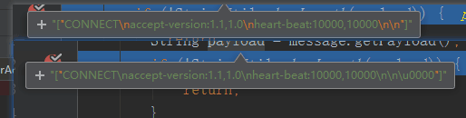 然后就是无法进入connect方法回调的问题,如下图,先进入connect方法中,然后收到服务器所发送的消息“a["CONNECTED\nversion:1.1\nheart-beat:0,0\nuser-name:wangliujing\n\n\u0000"]",在方法