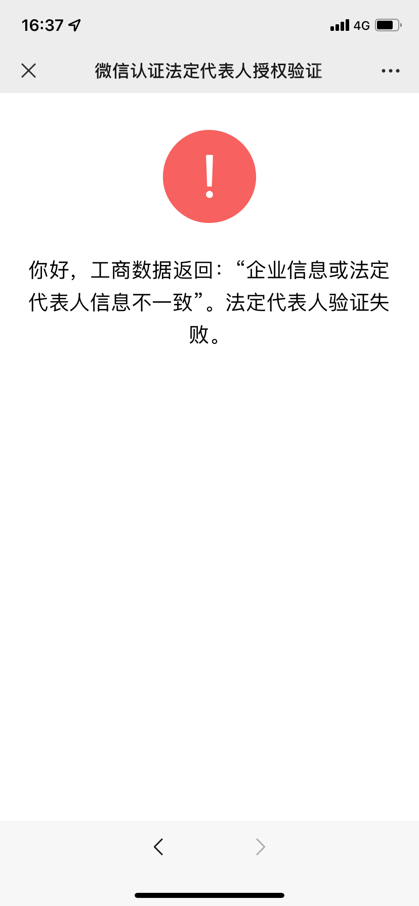 工商和法定代表人资料输入全部正确,但无法验证。无法申请服务号。
